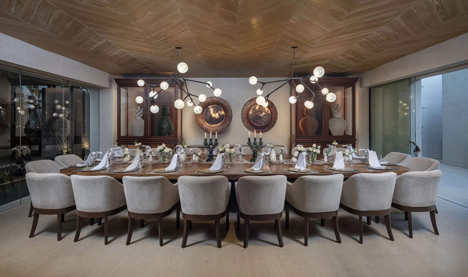 You, your family and friends may gather under the beachfront palapa, at the palapa bar and lounge, in the 20-guest formal dining room or the more intimate 10-guest Wine Cellar to enjoy passionately prepared meals. The Chef and staff are pleased to include gourmet vegan selections.