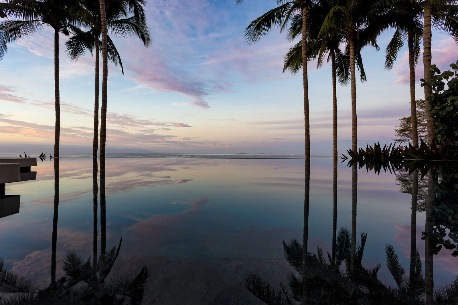 Guests relaxing in the sun loungers are lulled into a peaceful state by ocean waves lapping the shore and water cascading over the infinity pool’s expansive edge.